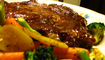 A more tender steak. Because the interior of the steak is cooked at a relatively low temperature, it stays tender. It’s low, slow cooking — the same as with your slow cooker. But because you’re cooking a more tender piece of meat to begin with, it only takes a portion of an hour, instead of all day.