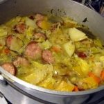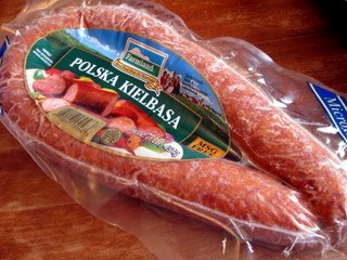 • 1–2 packages of Polish kielbasa (or ring baloney, or a big hamhock), cut in 1/2″ rings